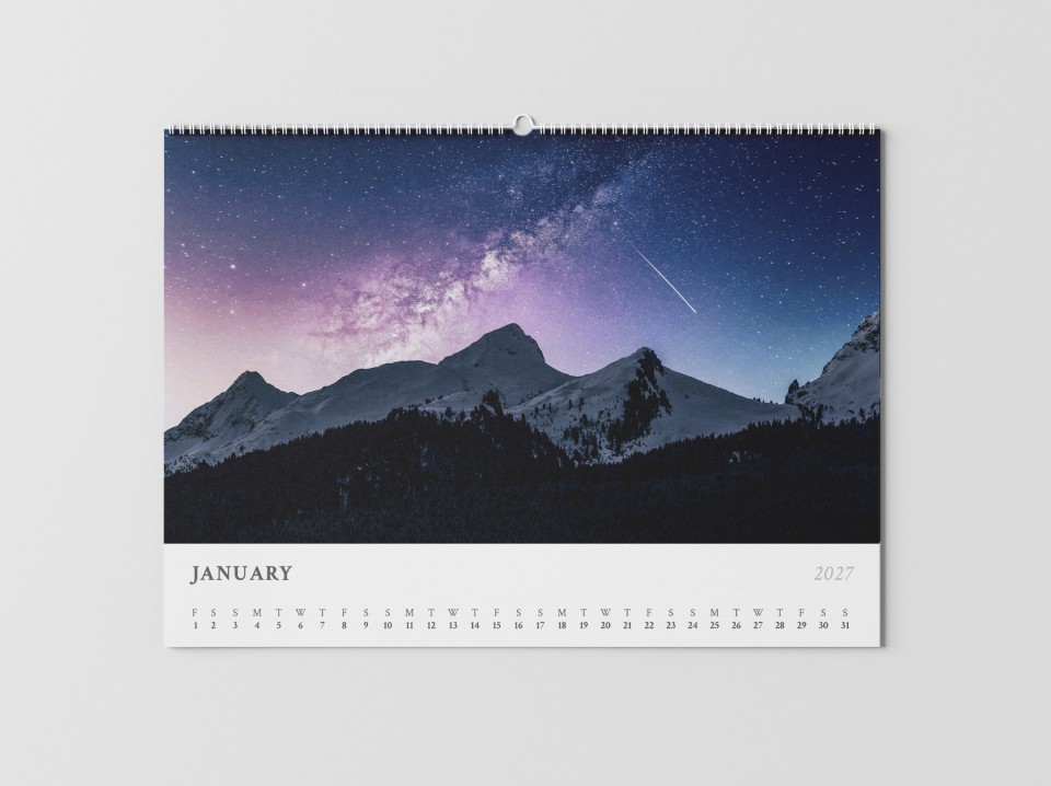 All calendar templates are available in A4 and A3. A4 is ideal for compact wall hanging or desk display, while A3 gives your photography or artwork maximum impact.