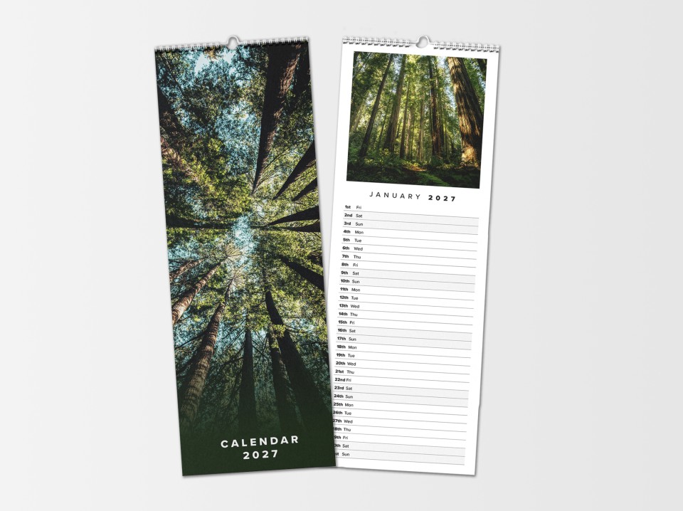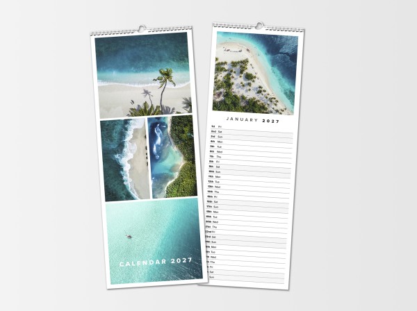 The Slim Calendar is our most practical template, designed specifically for those who need to stay organized without sacrificing style. At 420mm x 148mm, its narrow profile is perfect for kitchen pillars, office cubicles, or any compact wall space.